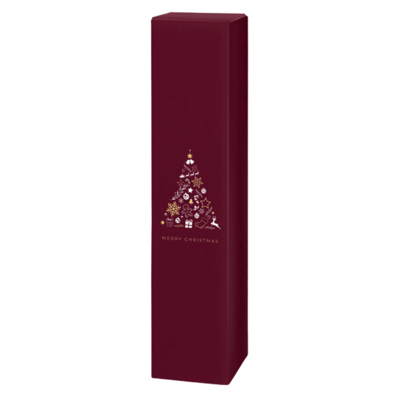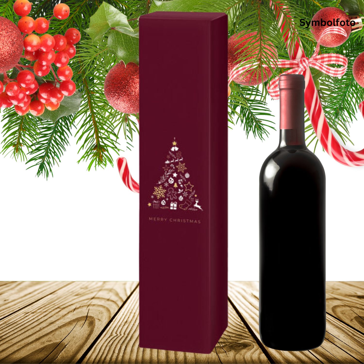 Der 1er Geschenkkarton Christmas Tree in kräftigem Rot ist eine elegante und stimmungsvolle Verpackung für eine einzelne Wein- oder Sektflasche. Mit seinem weihnachtlichen Motiv bietet er eine hochwertige Präsentation für festliche Anlässe und persönliche Geschenkideen.