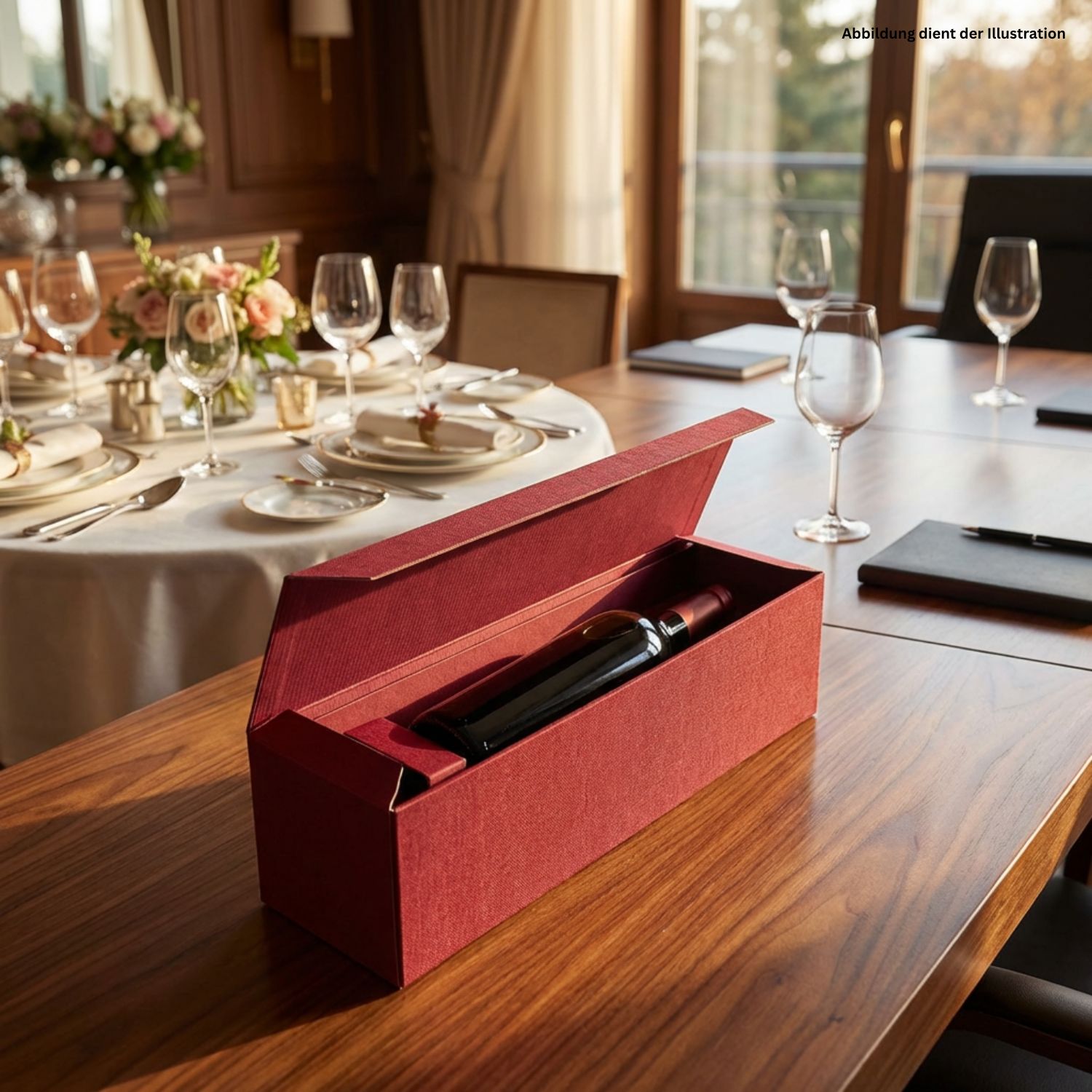 Der 1er Geschenkkarton rot ist die ideale Wahl für alle, die eine einzelne Flasche hochwertig, stilvoll und mit emotionaler Wirkung präsentieren möchten. Er verbindet klassische Eleganz mit moderner Haptik und sorgt für einen bleibenden Eindruck.