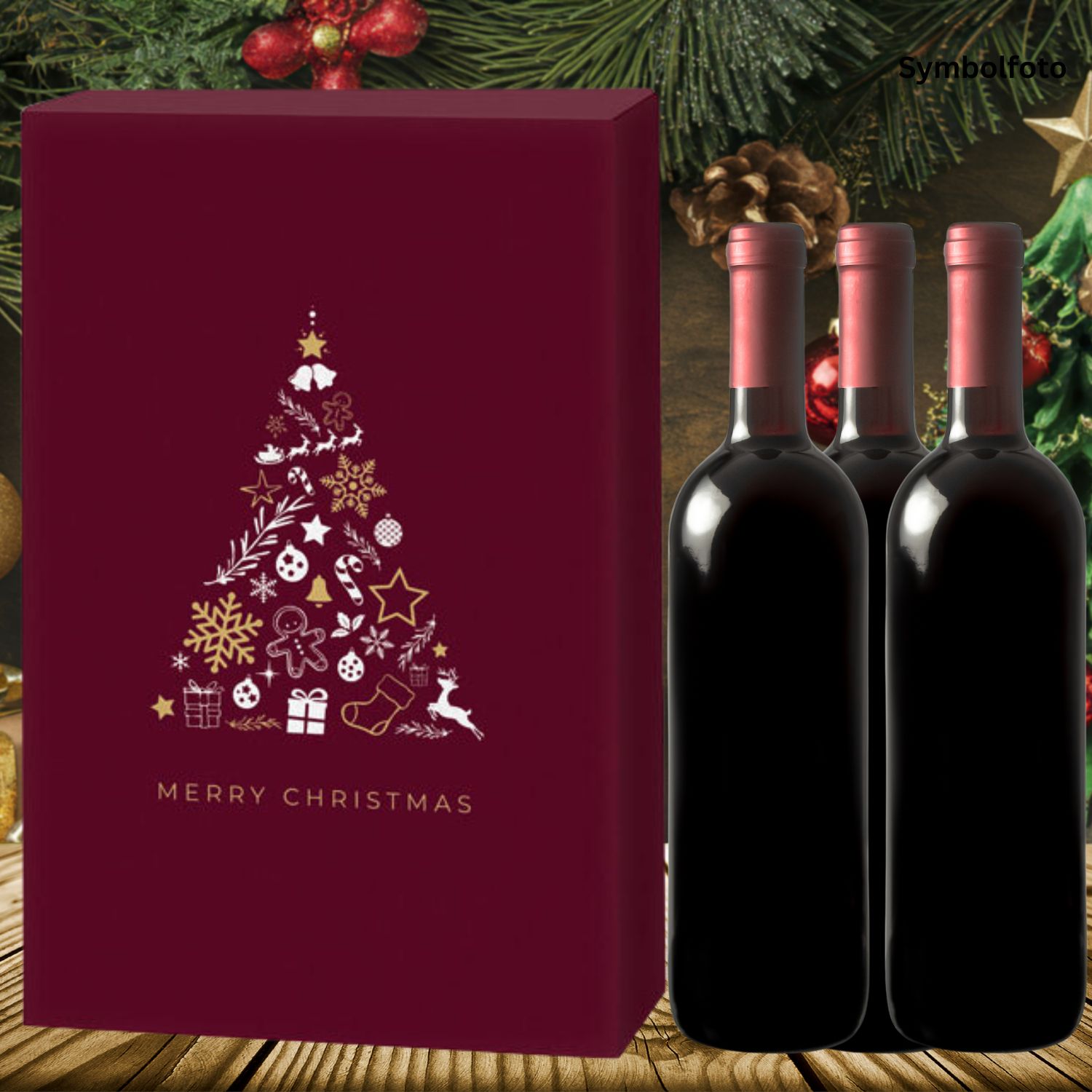 Der 3er Geschenkkarton „Christmas Tree“ rot ist ideal, wenn mehrere Flaschen Wein oder Sekt gemeinsam verschenkt werden sollen. Er eignet sich hervorragend für Weihnachtsgeschenke, Firmenpräsente oder private Anlässe in der Adventszeit. Besonders bei Weinpaketen, Weinserien oder sorgfältig zusammengestellten Dreier-Sets sorgt diese Verpackung für einen geschlossenen, hochwertigen Gesamteindruck. Durch das weihnachtliche Design wird der Inhalt ohne zusätzlichen Aufwand festlich inszeniert und emotional aufgeladen.