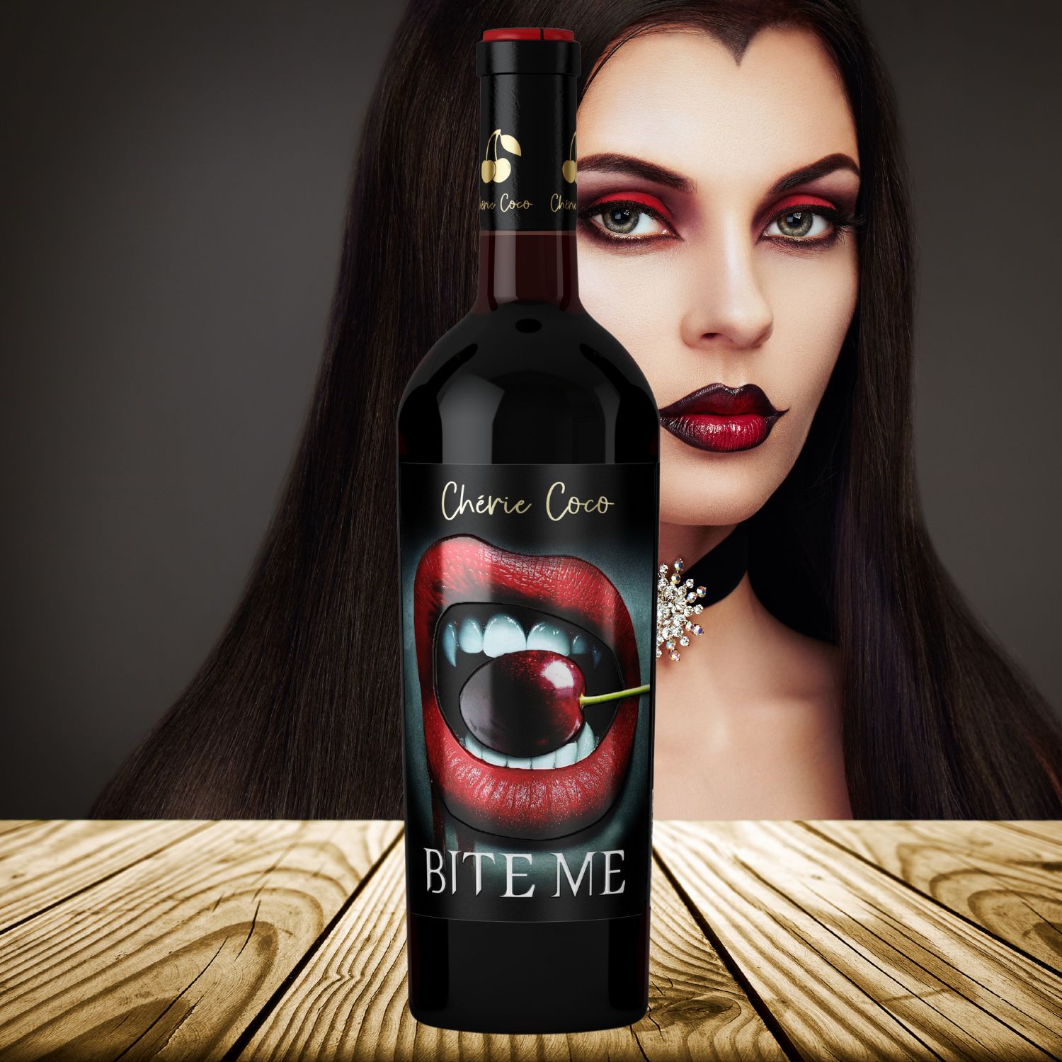 Chérie Coco zeigt gleich zwei Gesichter: eine stilisierte Lippenpartie (mit transparentem Lack gedruckt, um die Volumina der Lippen / des Weins zu betonen) mit Kirsche auf der einen Seite, ein geheimnisvoll geschminktes Gesicht in Schwarz und Gold auf der anderen – eine Designerwein Flasche, zwei Perspektiven, ein erotisches Spiel mit Bild und Botschaft. Die Gestaltung spielt bewusst mit Reiz und Kontrast: schwarz und rot, Kirsche und Rauch, Süße und Tiefe. Dieser Wein ist gemacht, um aufzufallen – und im Gedächtnis zu bleiben.