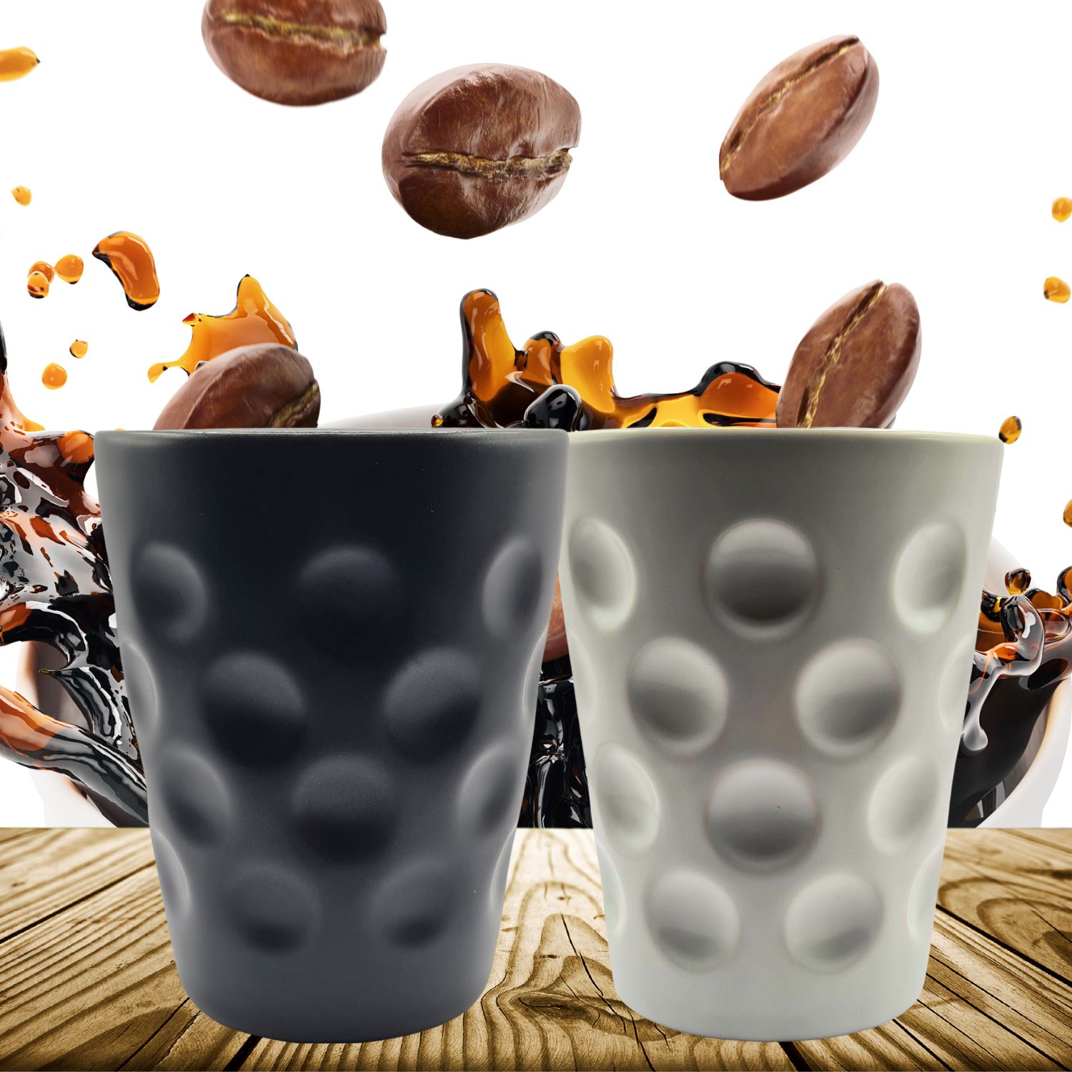 Der Becher besteht aus robuster, hochwertiger Keramik, die Getränke angenehm lange warm hält. Die Dubben-Struktur sorgt nicht nur für das typische Design, sondern liegt auch rutschfest und angenehm in der Hand. Die matte Oberfläche – wahlweise in tiefem Schwarz oder reinem Weiß – verleiht ihm eine moderne Ästhetik, die in jede Umgebung passt. Spülmaschinengeeignet und alltagstauglich ist er ein treuer Begleiter für alle, die Genuss und Design schätzen.
