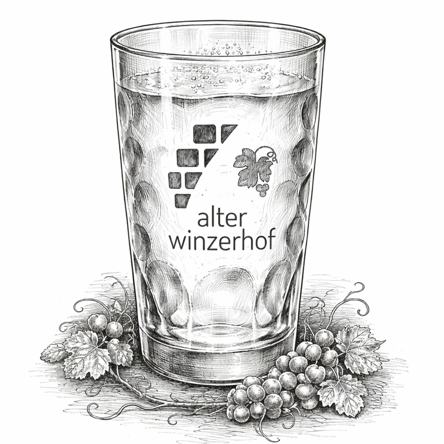 Schorle mit Stil: Das Dubbeglas „Alter Winzerhof“ bringt nicht nur 0,5 Liter Pfälzer Lebensfreude ins Glas, sondern auch den Namen eines Ortes, an dem Wein Leidenschaft ist. Klassisch gedubbt, geeicht und mit elegantem Logo – so trinkt man heute Pfalz.