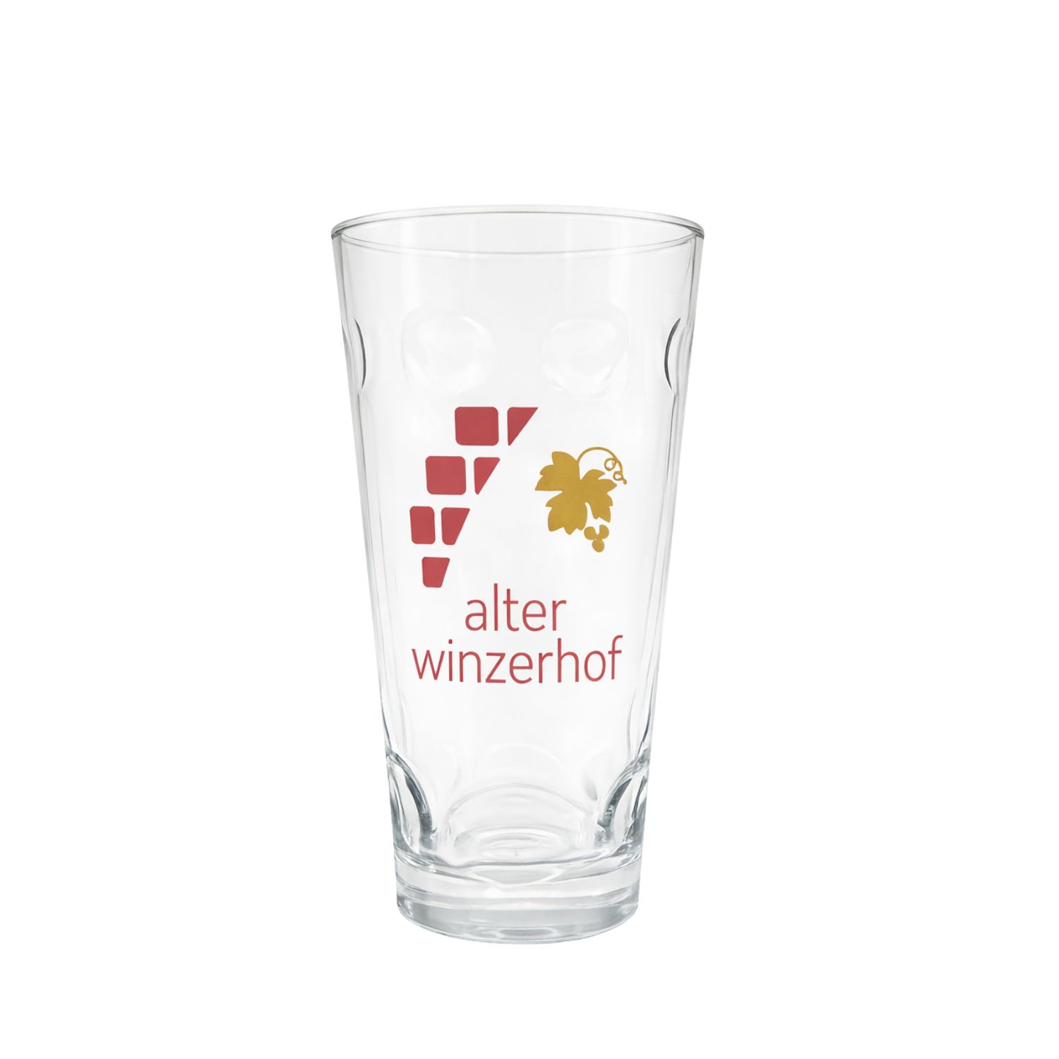 Dubbegläser gehören zur Pfalz wie der Riesling in die Schorle. Das Dubbeglas Alter Winzerhof ist eine Hommage an diese Tradition – mit modernem Auftritt. Das aufgedruckte Logo des Alten Winzerhofs mit goldener Weinranke und stilisierter Dreiecksstruktur verleiht dem Schoppenglas einen individuellen Charakter, der Herkunft zeigt – und Haltung.
