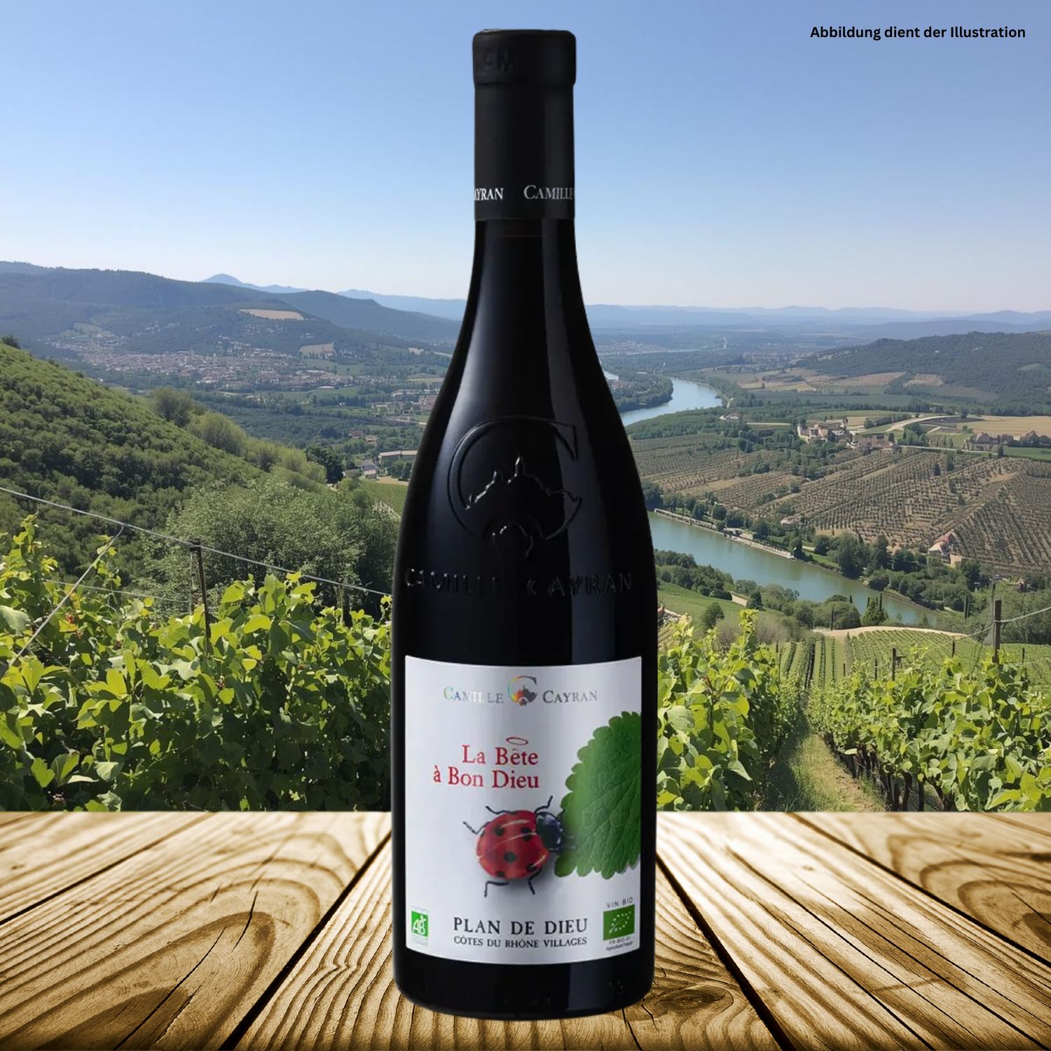 Der La Bête à Bon Dieu stammt aus der Appellation Côtes du Rhône im Département Vaucluse in Frankreich und wird von der Cave de Cairanne vinifiziert. Die Weinberge liegen rund um die Gemeinde Cairanne am linken Ufer der Rhône, gegenüber den markanten Dentelles de Montmirail und dem Mont Ventoux. Die Reben wachsen auf steinigen, lehm- und kalkhaltigen Böden an sanft geneigten, sonnenverwöhnten Hängen. Diese Kombination aus mineralischem Terroir und mediterranem Klima sorgt für eine optimale Reife der Trauben und verleiht dem Wein seine aromatische Intensität und Struktur. Typische Rebsorten der Region wie Grenache, Syrah und Carignan prägen diesen Côtes du Rhône Rotwein und sorgen für ein ausgewogenes Zusammenspiel aus Frucht, Würze und Kraft.