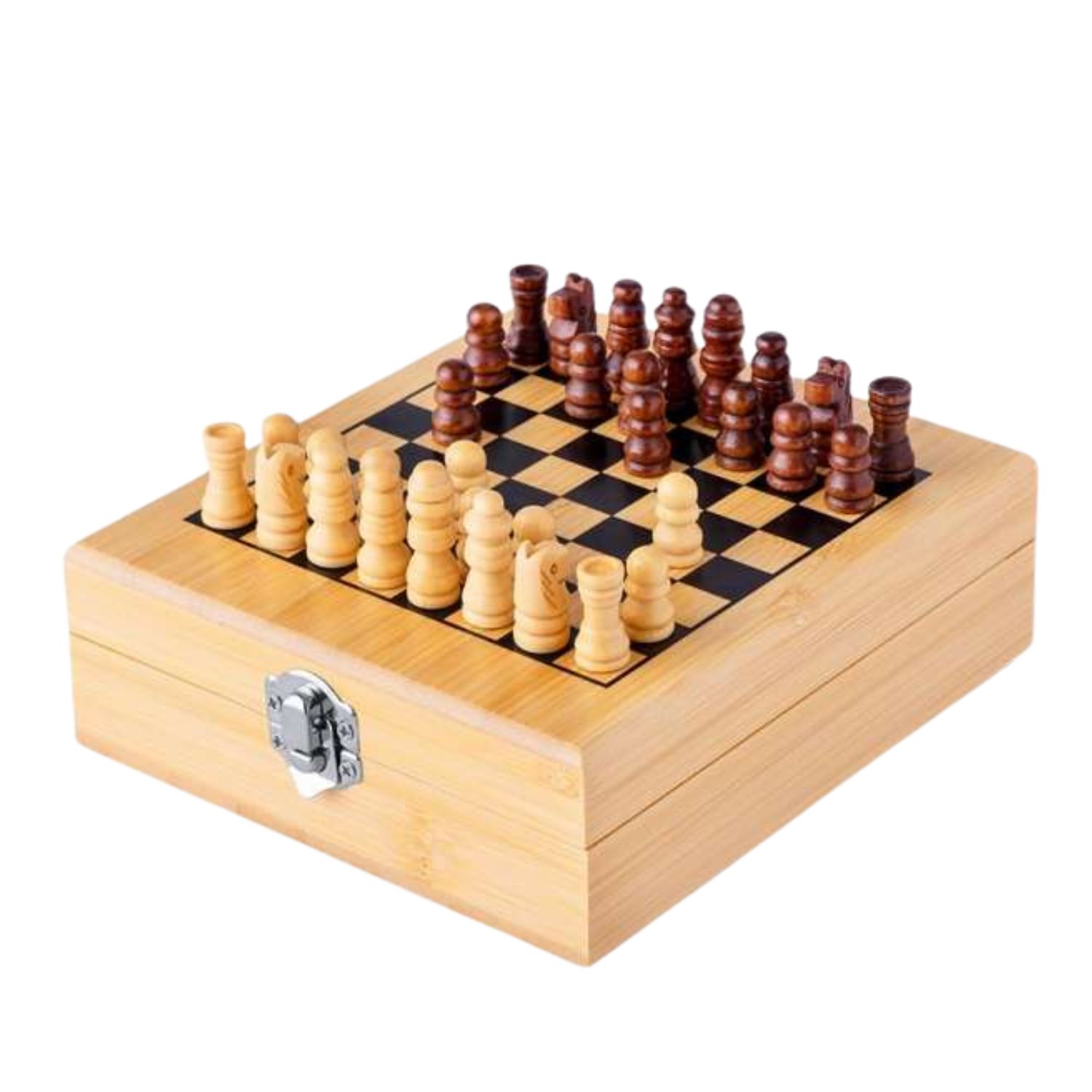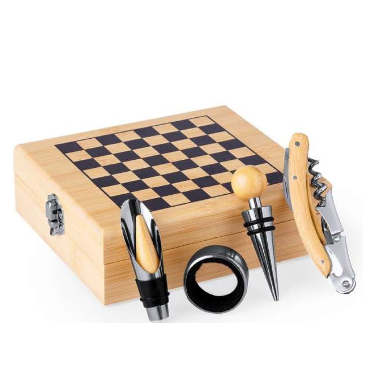 Dieses Wein Geschenkset mit Schachspiel ist kein klassisches Weingeschenk, sondern eine Einladung, sich Zeit zu nehmen. In der hochwertigen Bambusbox treffen ein vollständiges Schachspiel und ausgewähltes Wein-Zubehör aufeinander, klar getrennt und durchdacht angeordnet. Das Set richtet sich an Menschen, die Genuss nicht nebenbei erleben möchten, sondern bewusst. Die Weinflasche ist nicht enthalten.