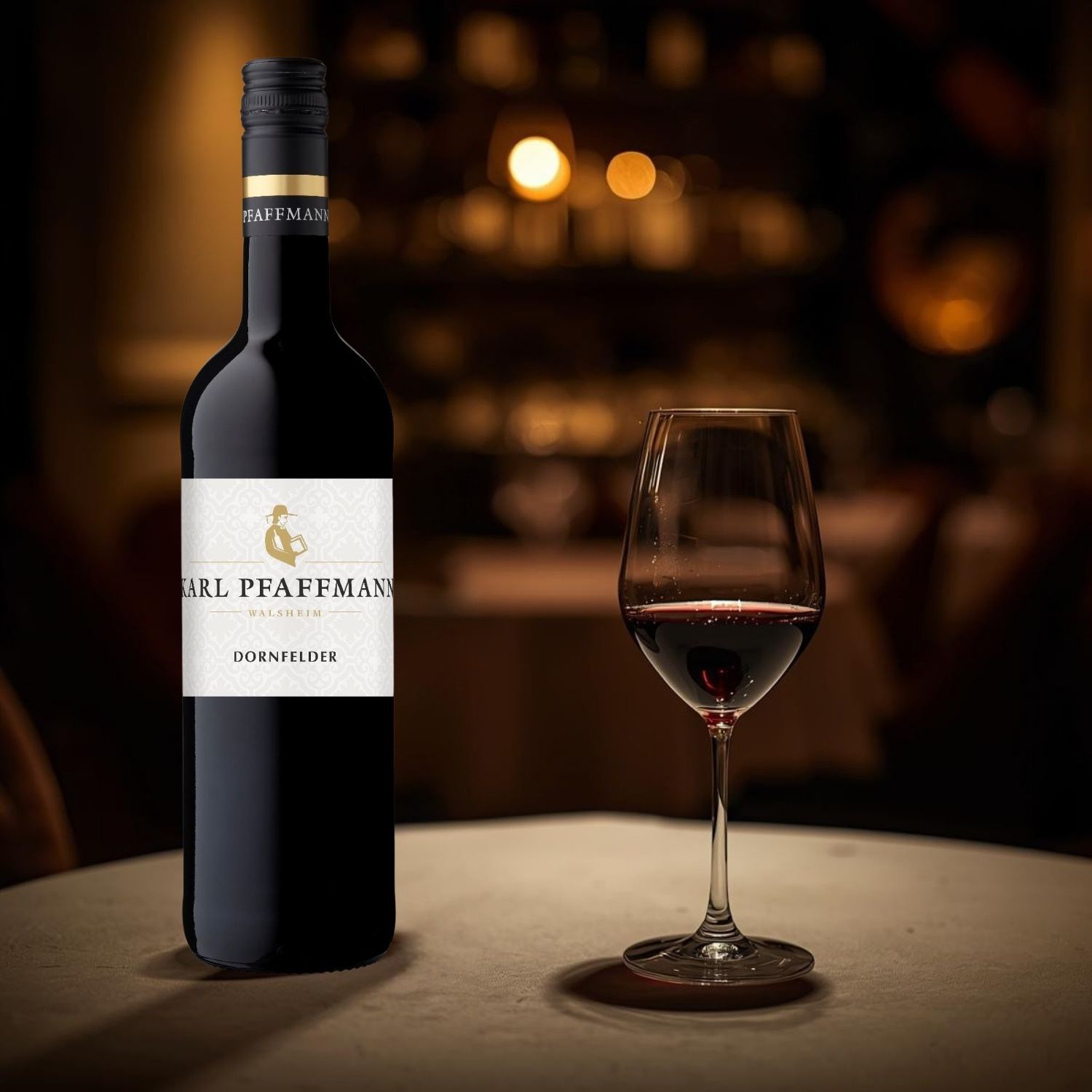Die Pfalz gehört zu den sonnenreichsten Weinregionen Deutschlands und bietet mit ihrem milden Klima und fruchtbaren Böden beste Voraussetzungen für ausdrucksstarke Rotweine. Von dort stammt der 2023 Dornfelder lieblich. In Walsheim bewirtschaftet das Weingut Karl Pfaffmann seine Weinberge mit dem klaren Ziel, Rebsortencharakter und Trinkfreude in Einklang zu bringen. Der Dornfelder spielt dabei eine besondere Rolle, da er durch konsequente Ertragsreduktion und reifes Lesegut sein volles Potenzial entfalten kann. Was diesen Wein so besonders macht? Die Verbindung aus intensiver Farbe, reifer Frucht und einer bewusst zugänglichen Stilistik, die den Dornfelder als lieblichen Genusswein modern interpretiert.