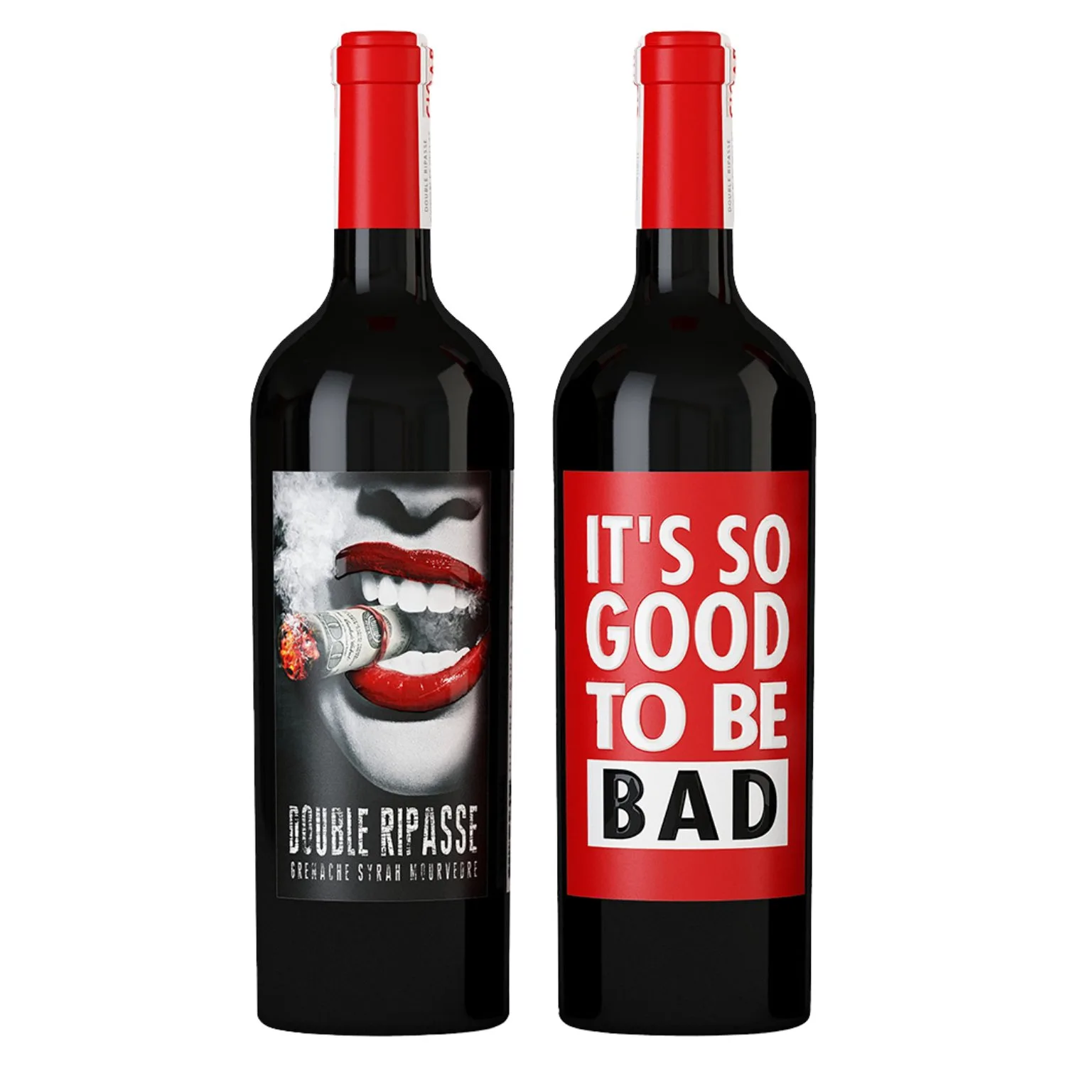 Double Ripasse: In der Nase zeigt der Double Ripasse dunkle Beerenfrucht, reife Pflaumen und Schwarzkirschen, begleitet von Röstaromen, Rauch und einem Hauch von Leder. Am Gaumen präsentiert sich der Wein äußerst kraftvoll und konzentriert, mit dichter Struktur und markanten, aber reifen Tanninen. Die Ripasse-Technik sorgt für zusätzliche Tiefe, Fülle und einen intensiven, lang anhaltenden Abgang mit würzigen und leicht balsamischen Noten. Das sinnlich-provokante Motiv mit roten Lippen und Zigarre steht für Tiefe, Wärme und Intensität. Es greift die dunkle Aromatik des Weins visuell auf und macht deutlich, dass hier kein leichter Rotwein, sondern ein echtes Schwergewicht wartet.